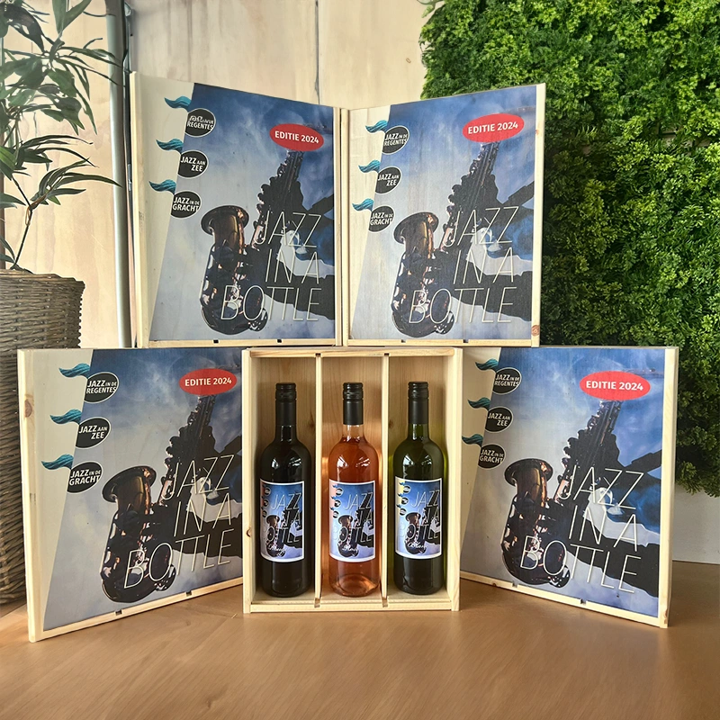 Drie fantastische wijnen in een unieke Editie 2024 kist, bestaande uit de Cuvée Blanc 2023, Cuvée Rosé 2023 en de Cuvée Rouge 2023.